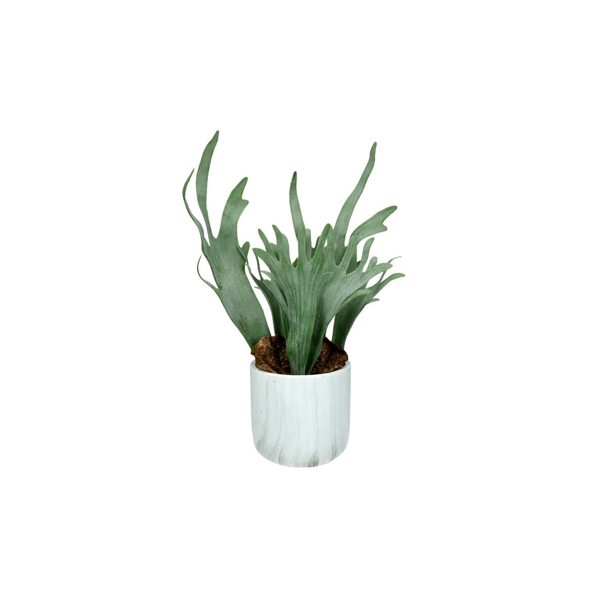 Vous n'avez pas forcément la main verte? Optez pour cette mini fougère en corne de cerf et sa finition rugueuse mate dans un pot en marbre tendance de chez Pomax.