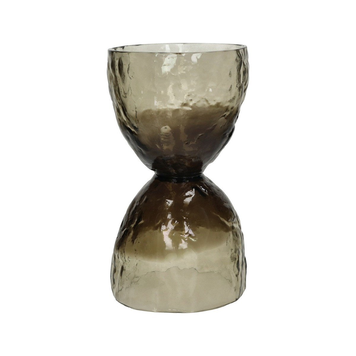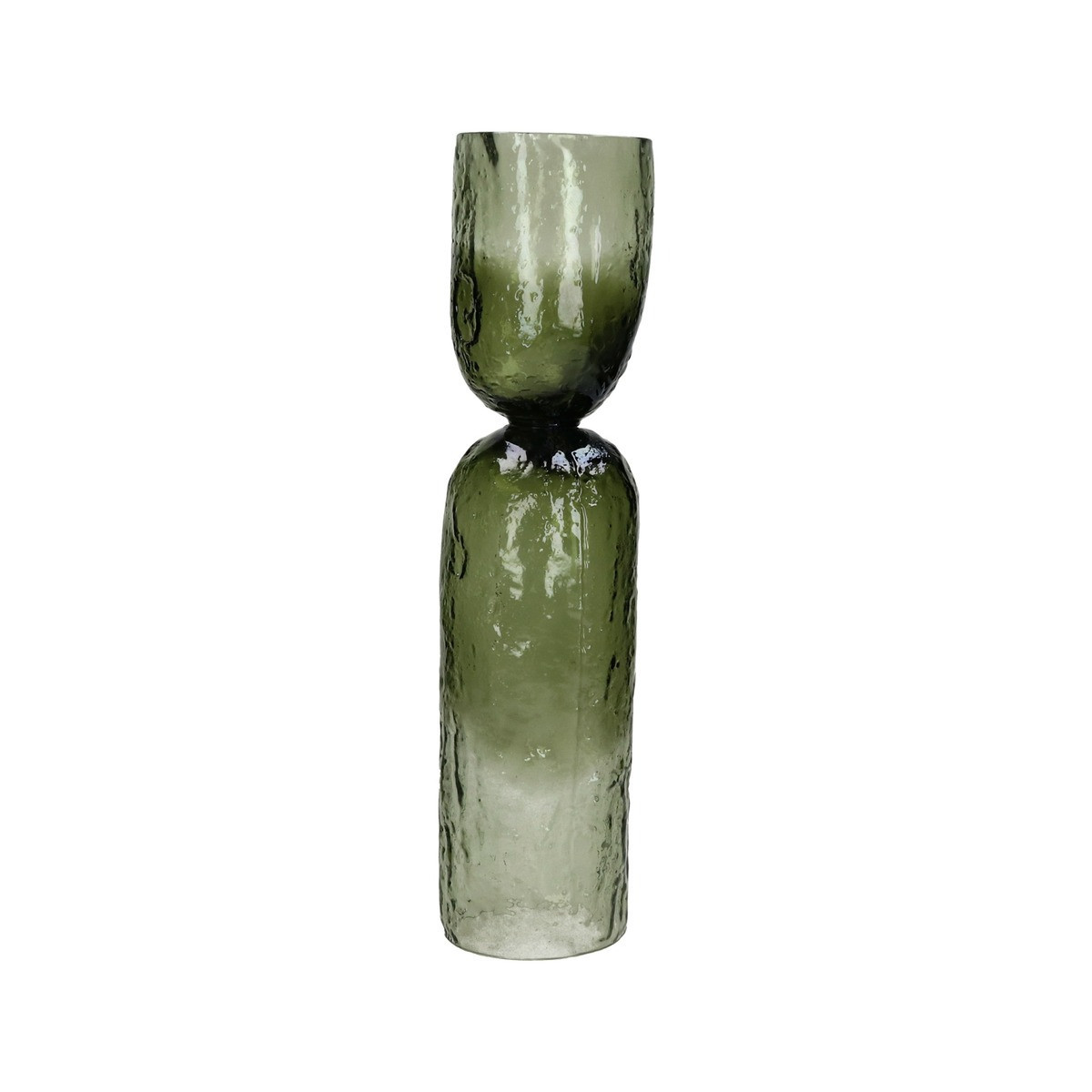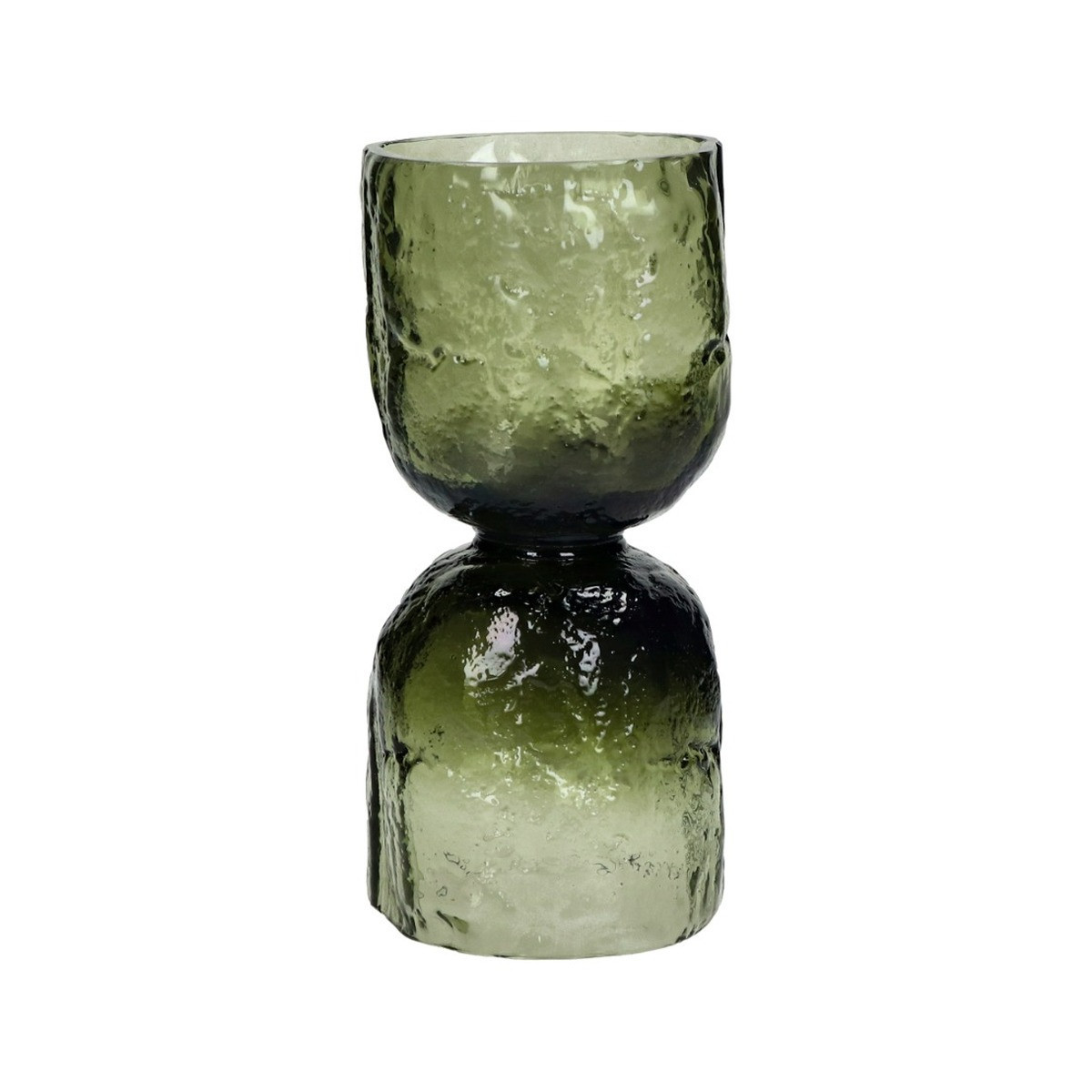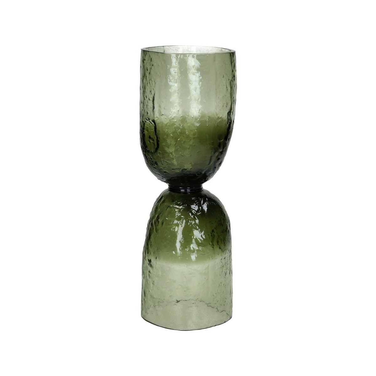 Vase et photophore Diabolo de Pomax en verre teinté. Un design organique inspiré des reflets de l'eau. Disponible en 6 tailles et 2 coloris : Vert et Fumé.