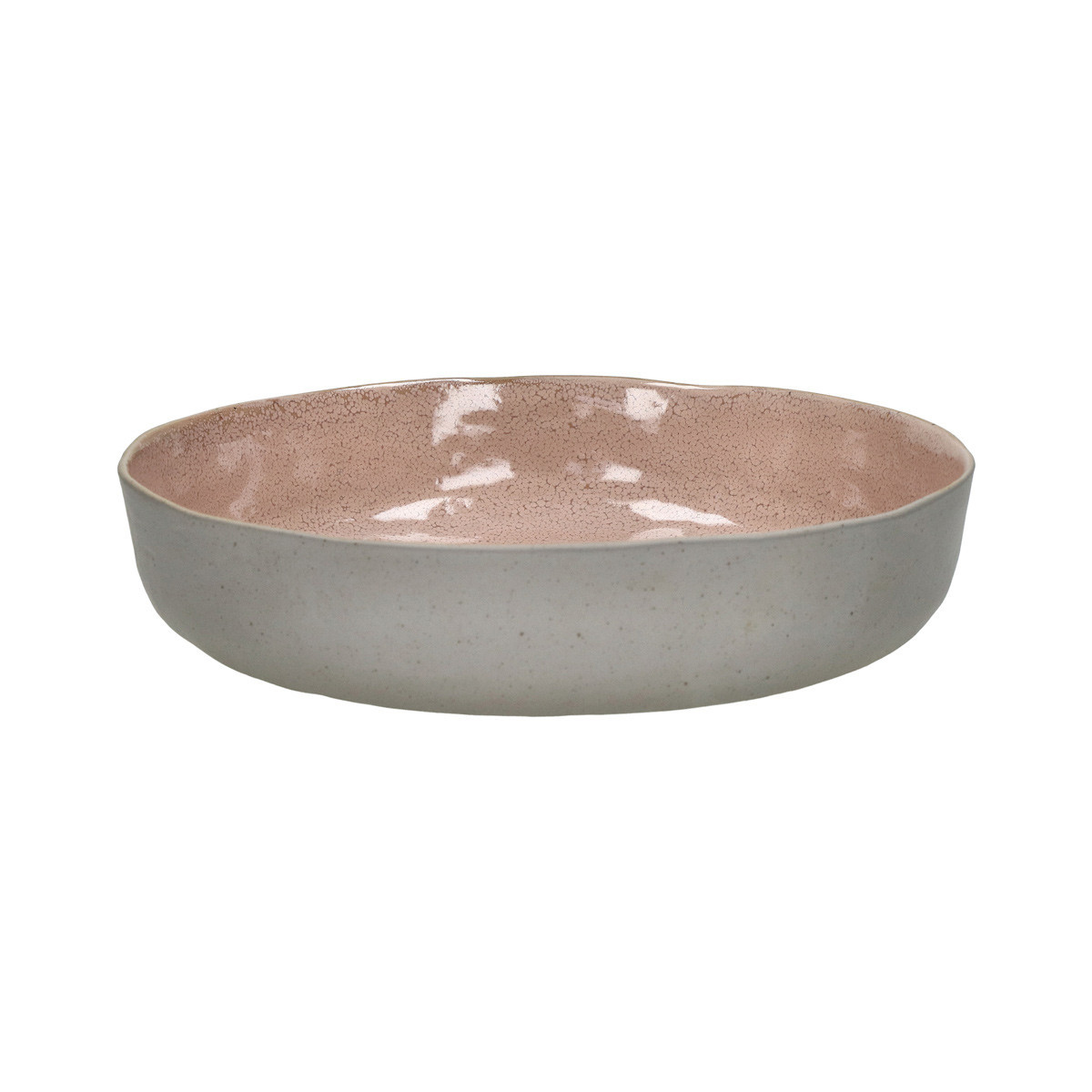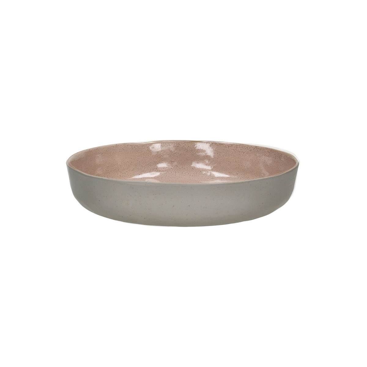 — Teinte : rose poudré doux aux nuances chair et vieux rose, intérieur émaillé réactif. L'extérieur reste identique au coloris Coquillage — gris stone mat moucheté — ce qui renforce le contraste saisissant entre les deux faces à la découverte du plat.