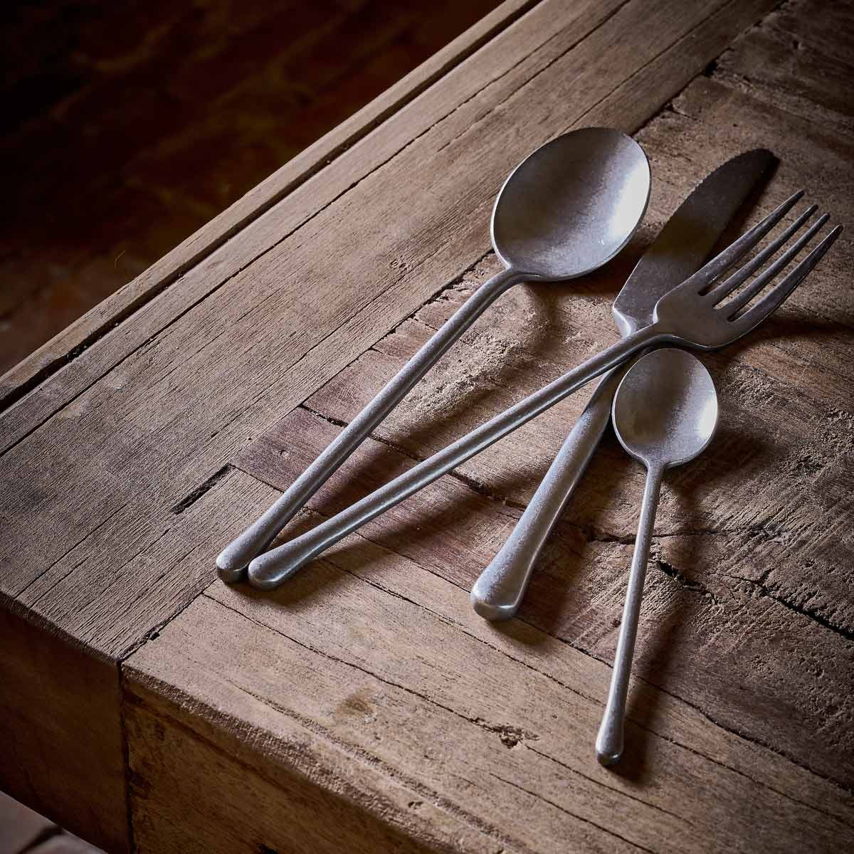 La finition polie miroir et la finition mate ne sont pas seulement deux aspects visuels différents — elles correspondent à deux approches de la table. La finition polie s'inscrit dans la tradition du couvert argenté de table, celui qui capte et redistribue la lumière des bougies ou des lustres. La finition mate s'inscrit dans le registre contemporain du couvert artisanal — moins théâtrale, plus tactile, plus proche des matières naturelles qui composent une table moderne. Le choix entre les deux est autant esthétique que stylistique : il dépend de la vaisselle associée et de l'ambiance générale recherchée.