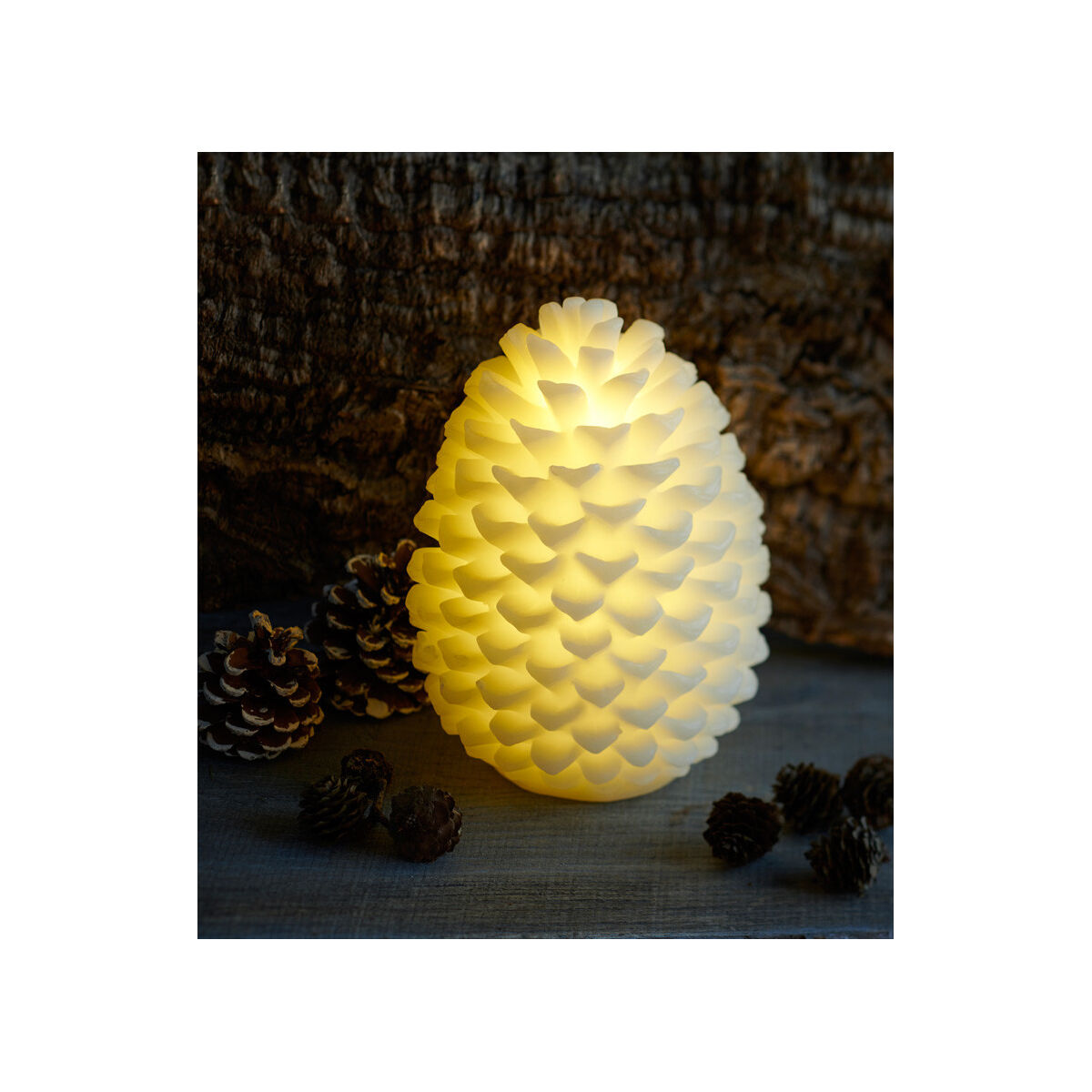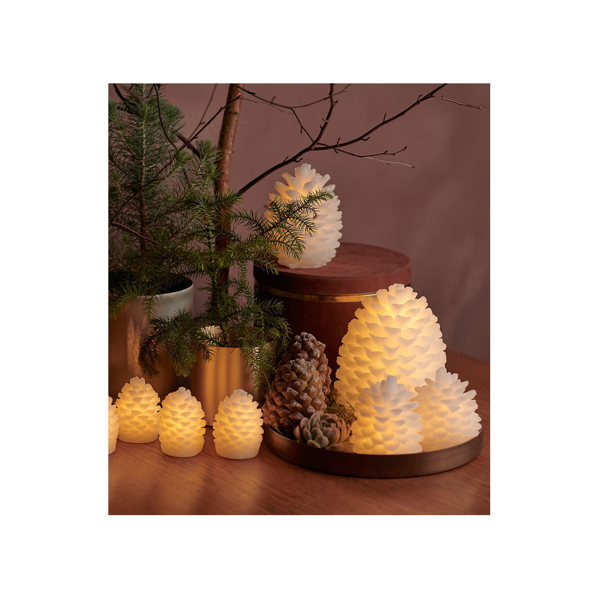 Pomme de pin lumineuse à led blanche de chez Sirius. Equipée d'un timer de 6h elle s'éteindra au bout de 6h et se rallumera automatiquement 18h plus tard si vous ne l'éteignez pas vous même (cycle de 24h). Vous pouvez également utiliser la télécommande en option (disponible ici) pour la gérer. A compléter avec les différenetes tailles disponibles de la même gamme.