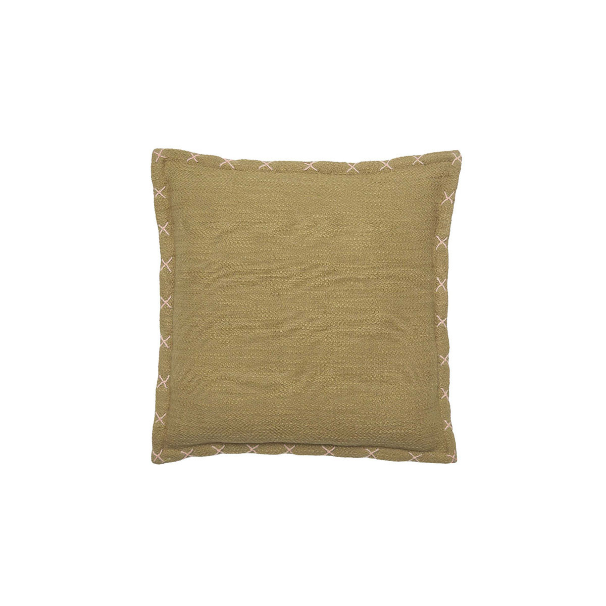 Housse de coussin Palafita Vent du Sud avec broderies croix. Coton slub épais (420 g/m²), finition lavée et zip. 2 formats et 5 coloris pour une déco bohème chic.